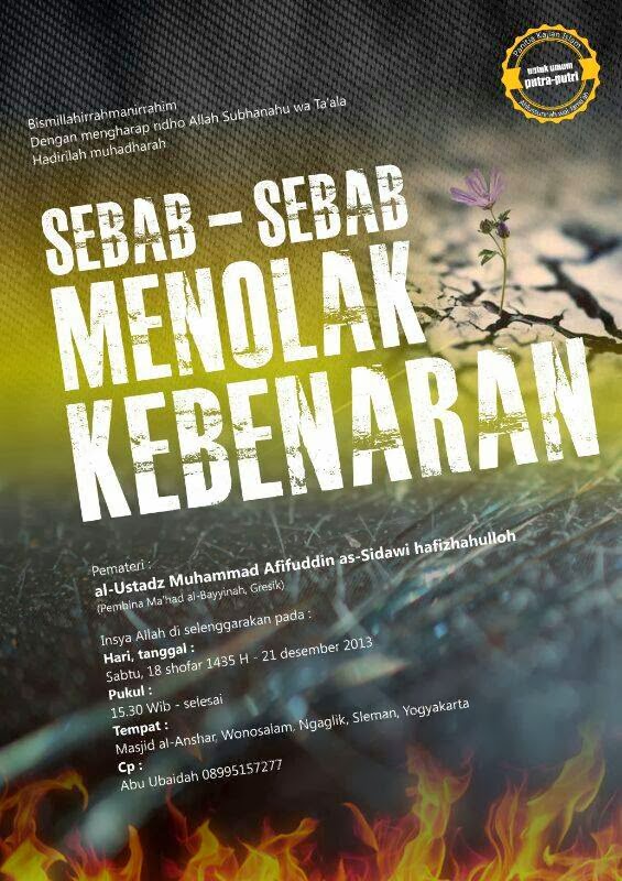 | » Al-Ustadz Muhammad Afifuffin As-Sidawy ~hafidzahumullah~ Sabtu, 18 Shafar 1435H -- 18/12/2013M » Sebab-Sebab Menolak Kebenaran | ||